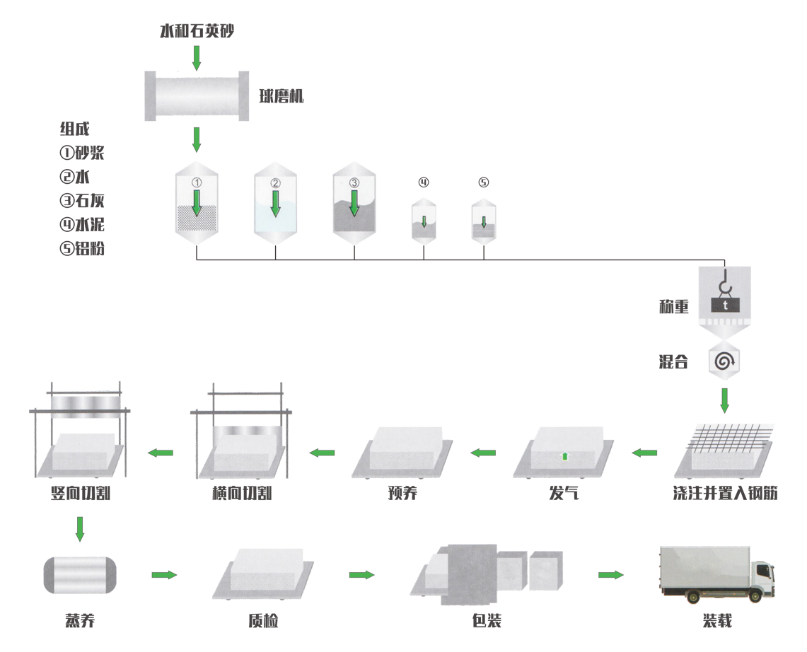 蒸壓加氣混凝土板材是以水泥、石灰、硅砂等為主要原料再根據(jù)結(jié)構(gòu)要求配置添加不同數(shù)量經(jīng)防腐處理的鋼筋網(wǎng)片的一種輕質(zhì)多孔新型的綠色環(huán)保建筑材料。經(jīng)高溫高壓、蒸汽養(yǎng)護(hù),反應(yīng)生產(chǎn)具有多孔狀結(jié)晶的蒸壓加氣混凝土板材,其密度較一般水泥質(zhì)材料小,且具有良好的耐火、防火、隔音、隔熱、保溫等無(wú)與倫比的性能。